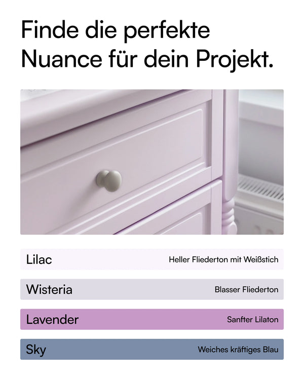 Ultramatte Kreidelack-Optik zur Anwendung ohne Vorbehandlung. Deckt ab dem ersten Anstrich.