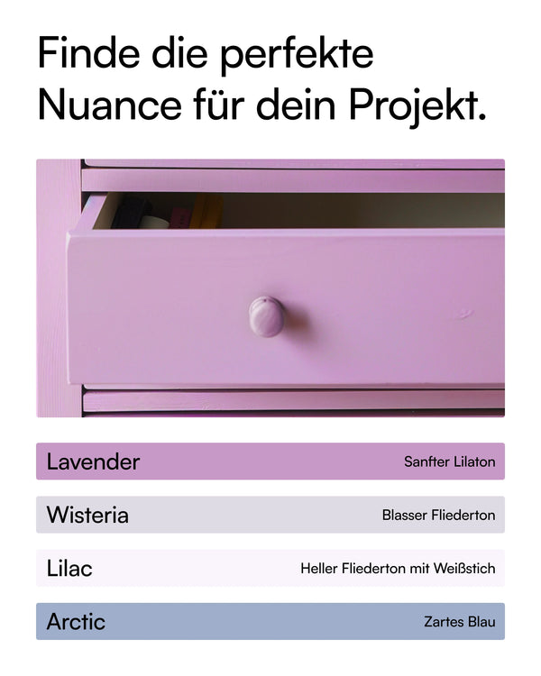 Ultramatte Kreidelack-Optik zur Anwendung ohne Vorbehandlung. Deckt ab dem ersten Anstrich.